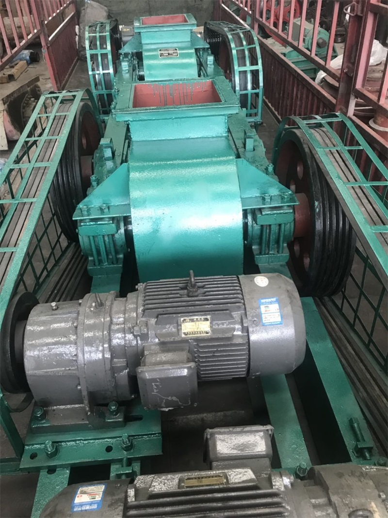 當(dāng)物料進入機器的破碎腔以后,物料受到轉(zhuǎn)動輥軸的嚙力作用,使物料***通過兩輥之間,同時受到輥軸的擠軋和剪磨,物料即開始碎裂,碎裂后的小顆粒沿著輥子旋轉(zhuǎn)的切線,通過兩輥軸的間隙,向機器下方拋出,超過間隙的大顆粒物料,繼續(xù)被破碎成小顆粒排出。